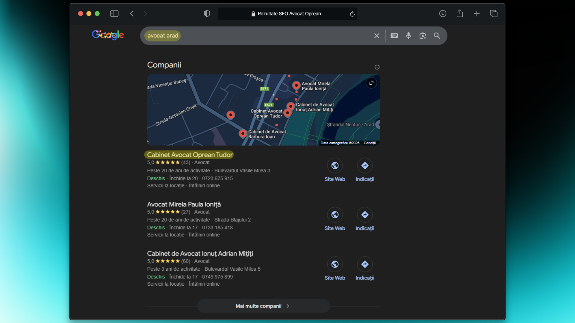 Poziția #1 în Google pentru „avocat arad"